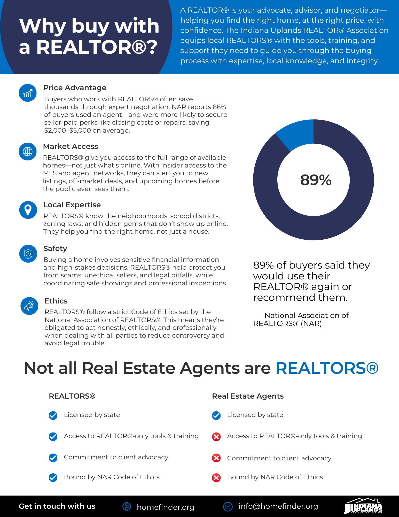 REALTORS® are members of the National Association of REALTORS® and subscribe to its strict Code of Ethics. When you’re buying a home, here’s what an agent who’s a REALTOR® can do for you: